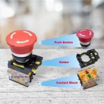 Nút nhấn khẩn emergency gồm ba bộ phận rời ghép lại với nhau. Đầu nút được thiết kế cho lỗ phi 22. Ngoài ra còn có vòng chuyển đổi khi sử dụng cho lỗ phi 25 mm và phi 30 mm. Ngoài ra đầu nút được thiết kế kín nước đạt tiêu chuẩn IP65, đủ để sử dụng trong môi trường có nước thường xuyên rơi vào.